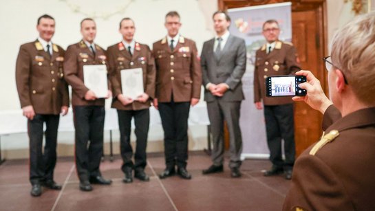 Den Abschluss bildeten die Florianmedaillen des Oö. Landesfeuerwehrverbands, die ebenfalls für besondere Verdienste und herausragende Tätigkeiten verliehen wurden. Thomas Ehrengruber (FF Haiding), Andreas Pennetzdorfer (FF Aichkirchen), Ralf Velten (AFKDO Lambach) sowie Michael Kraxberger und Günther Arthofer (FF Pichl b.W.) erhielten diese in Bronze. Ing. Josef Feichtinger, als dienstältester aktiver Feuerwehrkommandant, wurde die Florianmedaille in Silber verliehen.