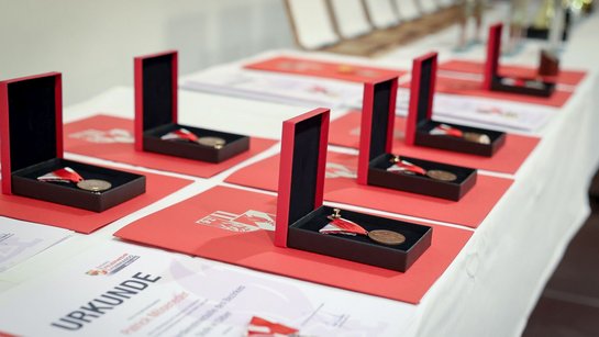 Für ihre besonderen Verdienste erhielten jeweils vier Feuerwehrkommandanten die Bezirksmedaille in Bronze und Silber. Die herausragenden Leistungen von Christian Kreilhuber (FF Weißkirchen) und Christian Preining (FF Kappern), die über 400 Dienste in der Bezirks-Nachrichtenzentrale bzw. über 40 Jahre Jugendarbeit geleistet haben, wurden mit der Bezirksmedaille in Gold gewürdigt.